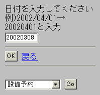 検索する日付を入力します。 ただし入力形式は「YYYYMMDD」です。 (例) 2002/04/01 → 20020401