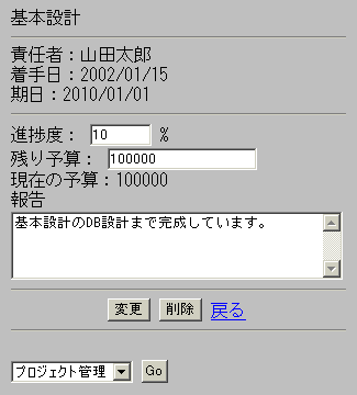 「プロジェクト情報」画面の下部にあるタスク一覧から”タスク名”を押します。