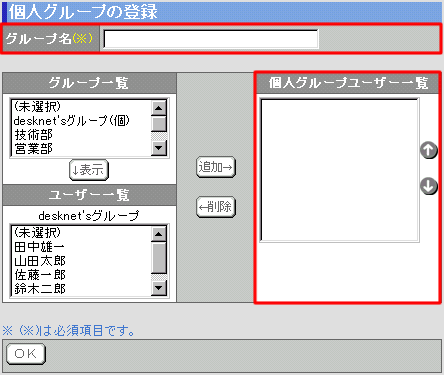 ※携帯端末対応版・PDA対応版では、利用者名簿機能でのみ、この個人グループが利用できます。