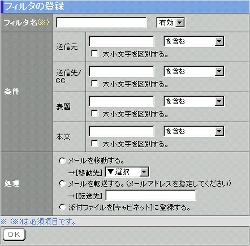 それぞれのフィールド(FROM、TO/CC、表題、本文)に対するチェック内容を入力します。