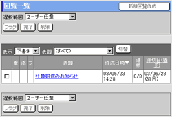 に保存されます。「表示」欄で”下書き”を選択すると保存した回覧が一覧に表示されます。