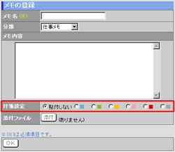 これによりメモの登録時に付箋を設定することが可能になりました。