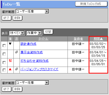 」項目にはToDoの「開始予定日」〜「期限」が表示されます。