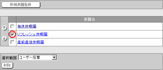 表題一覧画面の[選択範囲]欄より、削除したい表題を選択します。