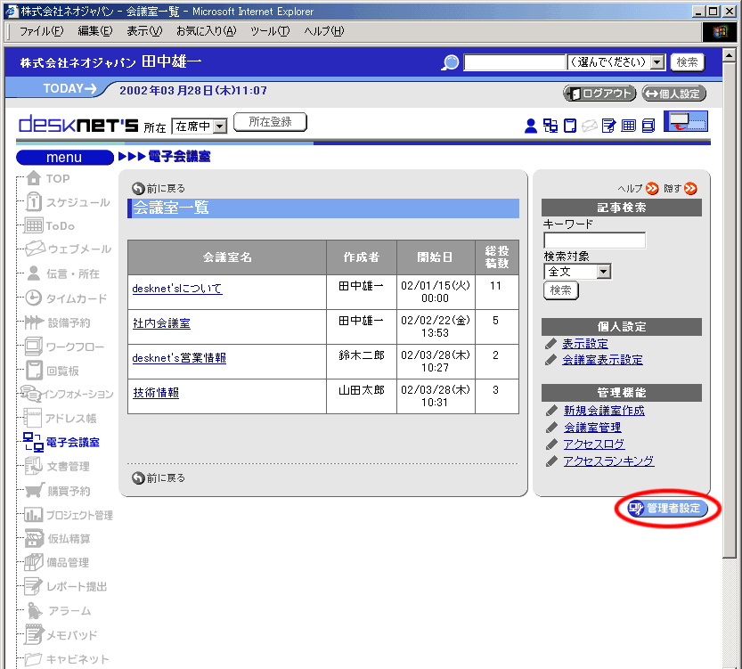 会議室一覧で、1ページに表示される会議室データの最大表示件数を設定します。 |