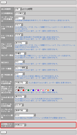 グループ1日、グループ週間スケジュールで、グループのスケジュールを表示するかどうかの設定です。