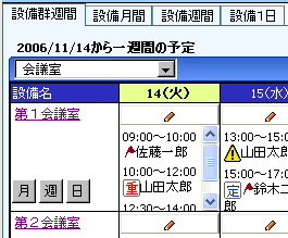 設備グループに所属する設備の1週間分の設備予約が表示されます。