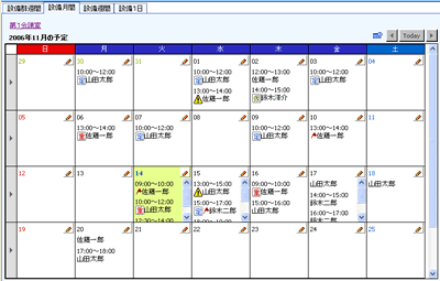 また、設備群週間、設備1日では設備予約の移動により時間の変更も行われます。
