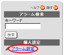 サブウィンドウの【個人設定】欄にある[アラーム設定]リンクを押します。