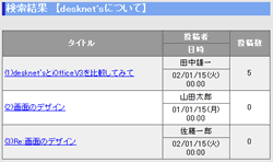 入力した検索条件に該当する記事が一覧に表示されます。検索された記事の"タイトル"リンクを押すと、記事表示画面が表示されます。