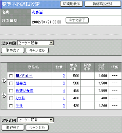購買予約詳細設定(※下記参照)の”名称”リンクを押します。