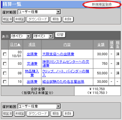 精算一覧画面の「新規精算登録」ボタンを押します。