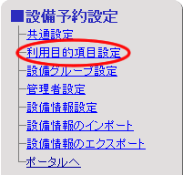 【設備予約設定】の[利用目的項目設定]リンクを押します。