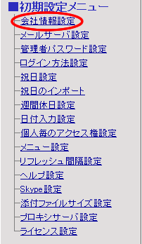 【初期設定メニュー】欄の[会社情報設定]リンクを押します。