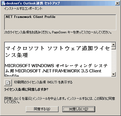 Outlook連携のインストールを実行していただくことで、上記コンポーネントのインストールを行うことが可能ですが、必須コンポーネントインストール後、クライアントPCの再起動が必要となる場合がありますので、「desknet's Outlook連携」インストール前に全ての作業を終了し、再起動可能な状態にしてインストールを行ってください。 ※記載の製品名(Office、Visual Studio、Windows)は、マイクロソフト社の商標または登録商標です。