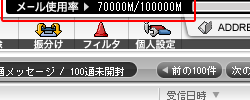 ※desknet'sスタンダード版のウェブメール[管理者設定]-[容量設定]で、使用できる容量の制限を行うことで「メール使用率」がウィンドウ上部に表示されます。