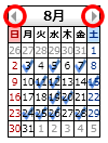 スケジュールが登録されている日には、青いチェックマークが付いています。