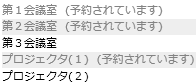 予約できる設備は黒字で表示されます。選択設備一覧に入っている設備や、既に予約が取られている設備はグレーで表示されます。
