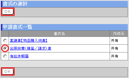を押すと新規作成画面に戻り、選択した書式が表示されます。