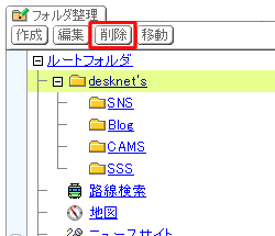 ブックマーク画面のフォルダ削除ボタンを押すと、削除確認メッセージが表示されます。
