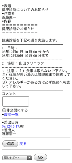 「回覧・レポート確認」画面の”履歴一覧”リンクを押すことによって表示されます。