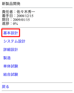 「プロジェクト情報」画面の下部にあるタスク一覧から”タスク名”を押します。