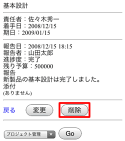 「タスク情報」画面の下部にある進捗報告一覧から”報告日”を押します。