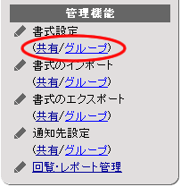 書式(共有)の設定を行う場合は[共有]リンクを、書式(グループ)の設定を行う場合は[グループ]リンクを押してください。