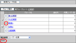 グループ一覧画面の[選択範囲]欄より、削除したいグループを選択してください。