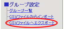 【グループ設定】欄の[CSVファイルへエクスポート]リンクを押します。