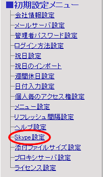 【初期設定メニュー】欄の[Skype設定]リンクを押します。