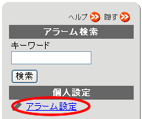 サブウィンドウの【個人設定】欄にある[アラーム設定]リンクを押します。
