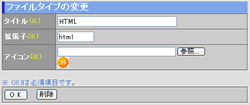 ここでは、そのファイルタイプの登録・変更・削除を行います。