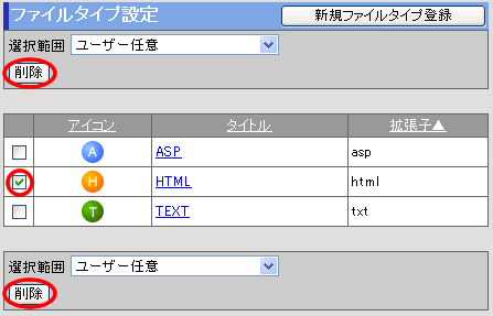 ※[削除]ボタンを押すと、このファイルタイプを削除することができます。