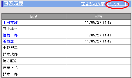 回答先のユーザーが記入したアンケートの回答をダウンロードしたい場合は、「ダウンロード」ボタンを押してください。