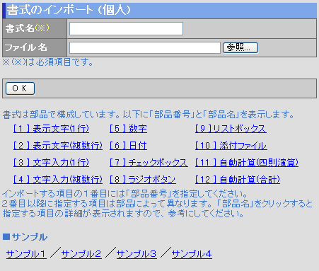 を押すと回答書式(個人)のインポートを開始します。 ※インポートでは、書式を新規に登録することはできますが、更新することはできません。