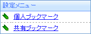 ブックマークは、ユーザーが自由に編集できる「個人ブックマーク」と、システム管理者のみ編集することができる「共有ブックマーク」があります。