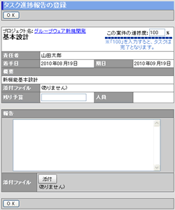 タスク情報画面の「新規報告作成」ボタンを押します。