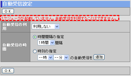 ※「自動受信設定」をお使いになる場合、スケジューラーを起動していただく必要があります。
