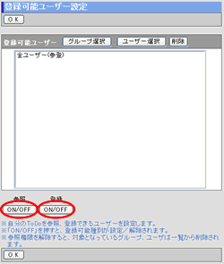 サブウィンドウの【個人設定】欄にある"登録可能ユーザー設定"リンクを押します。
