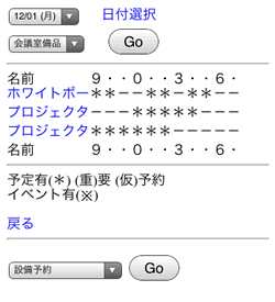 から表示したい日付を選択し、を押すことで任意の「設備予約/日」が表示できます。