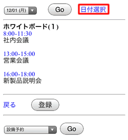 「設備予約/日」画面の”日付選択”リンクを押してください。
