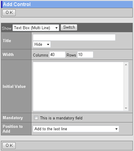Specify whether this field is mandatory. * Mark will be displayed in the left of the text box. |