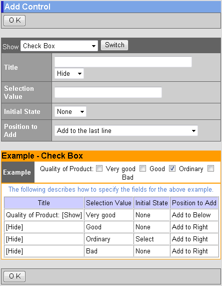 Select "Add to the last line", "Adds to below the selected line or control", "Adds to the right of the selected line or control" or "Adds to above the selected line or control". |