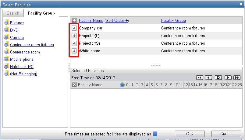 Click a facility group in the list to display facilities which belong to the facility group on the top right of the screen.