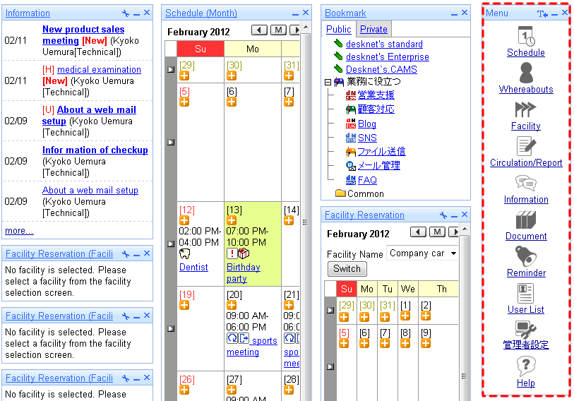The page of [desknet's DAX] will be displayed and the tabs remain on the screen.