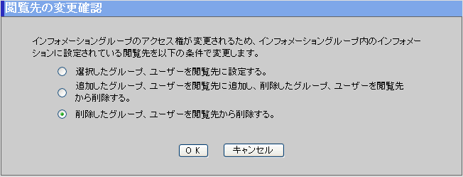閲覧先の変更確認画面では、インフォメーションに設定されている閲覧先を変更する条件を選択します。