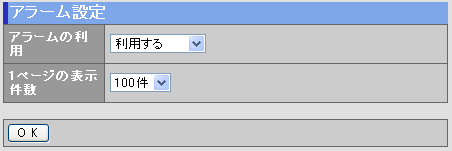アラーム一覧で、1ページに表示されるデータの最大件数を設定します。