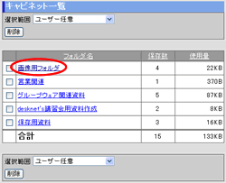 キャビネット一覧画面の"フォルダ名"リンクを押します。