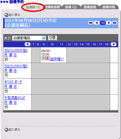 ”設備名”リンクを押すと、その設備の予約状況が表示されます。 |